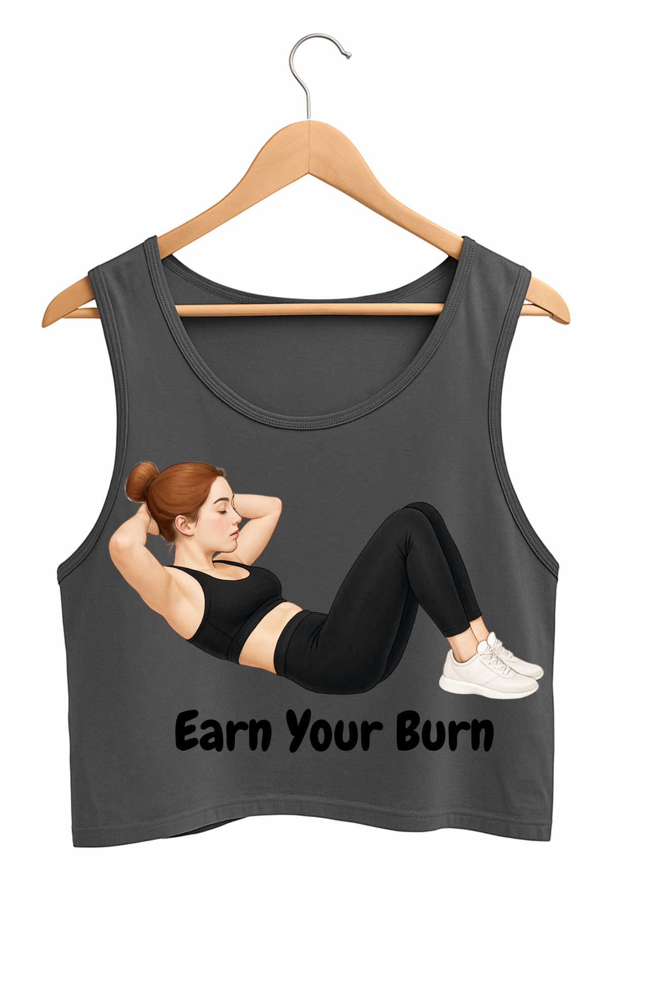 Earn Your Burn – Women’s Sleeveless Gym Crop Top (White / Charcoal Grey)